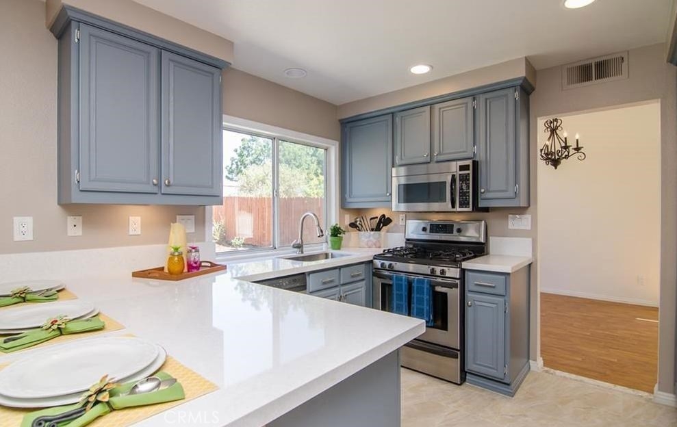 Gorgeous remodel- beautiful craftsmanship throughout with amazing attention to detail. This 2 story home has quartz counter-tops in the kitchen and bathrooms, custom tile in the bathrooms and master shower, beautifully upgraded fireplace area,high ceilings, custom fans and light fixtures, nicely done landscaping and many other fine upgrades. 2 car attached garage & a large fenced backyard. Vaulted ceilings, recessed lights, front porch, new closet doors and shelfs, newer interior and exterior paint, new flooring throughout the house. Easy access to the 15 freeway, shopping, schools & park.