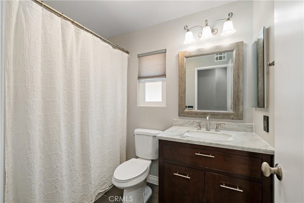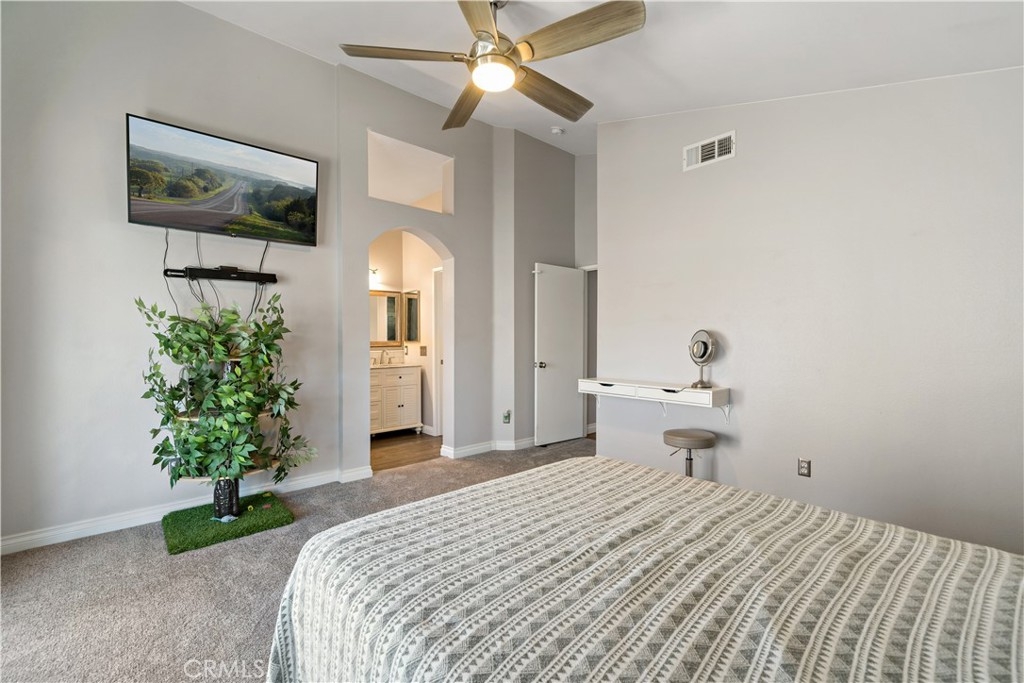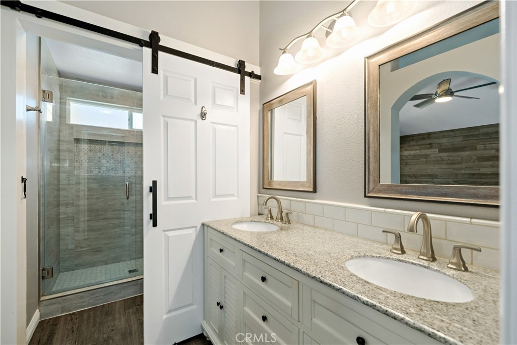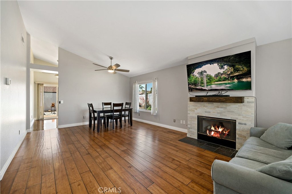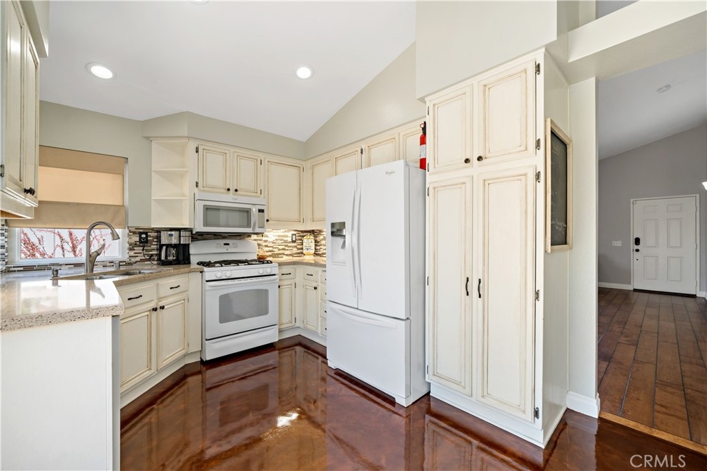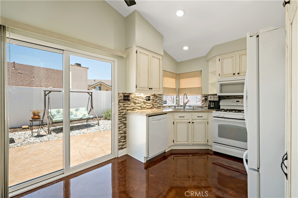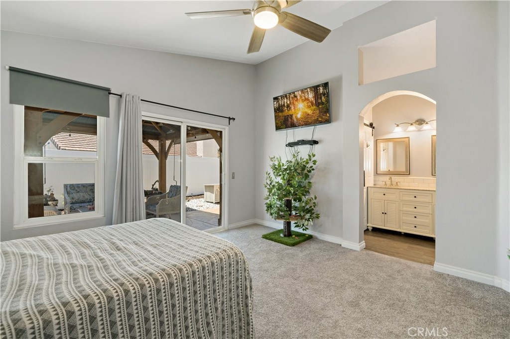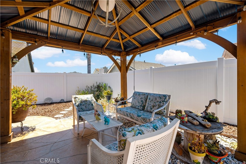 Welcome to this charming single-story home located in South Temecula. This property boasts numerous upgrades that are sure to impress. As you enter, you will immediately notice the Vista security door, providing both security and style. The home also features all-new windows and new patio sliding doors, allowing for ample natural light to flow throughout. Living area showcases beautiful hardwood flooring, creating a warm atmosphere. Cozy fireplace has been updated, becoming a focal point in the living area. Ceiling fans have been installed throughout the home, promoting airflow and comfort. Kitchen is a true highlight, featuring an acid stain epoxy floor and elegant quartz countertops The bedrooms have been updated with plush new carpeting. All bathroom vanities have been replaced, and the master bathroom boasts a luxurious tile walk-in shower plus a barn door that adds a touch of charm. The master bathroom also features luxurious LVP flooring. Closet organizers provide added convenience. Upgraded baseboards and a decorative wood wall in the master bedroom add a touch of elegance. The fire alarms have been updated for safety, and the vents have been upgraded for improved efficiency. The garage floor has been coated with epoxy, giving it a polished and sleek look Step outside onto the concrete overlay patio, perfect for outdoor entertaining with a delightful gazebo with lights and roll-down shades, creating the perfect space to relax and unwind. The backyard is low-maintenance, with drought-tolerant landscaping. The property is enclosed by new vinyl fencing, ensuring privacy and security. Don't miss the opportunity to own this beautifully upgraded single-story home in Temecula.