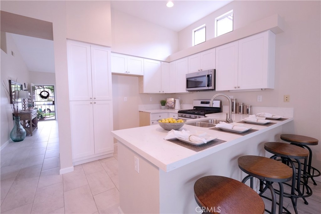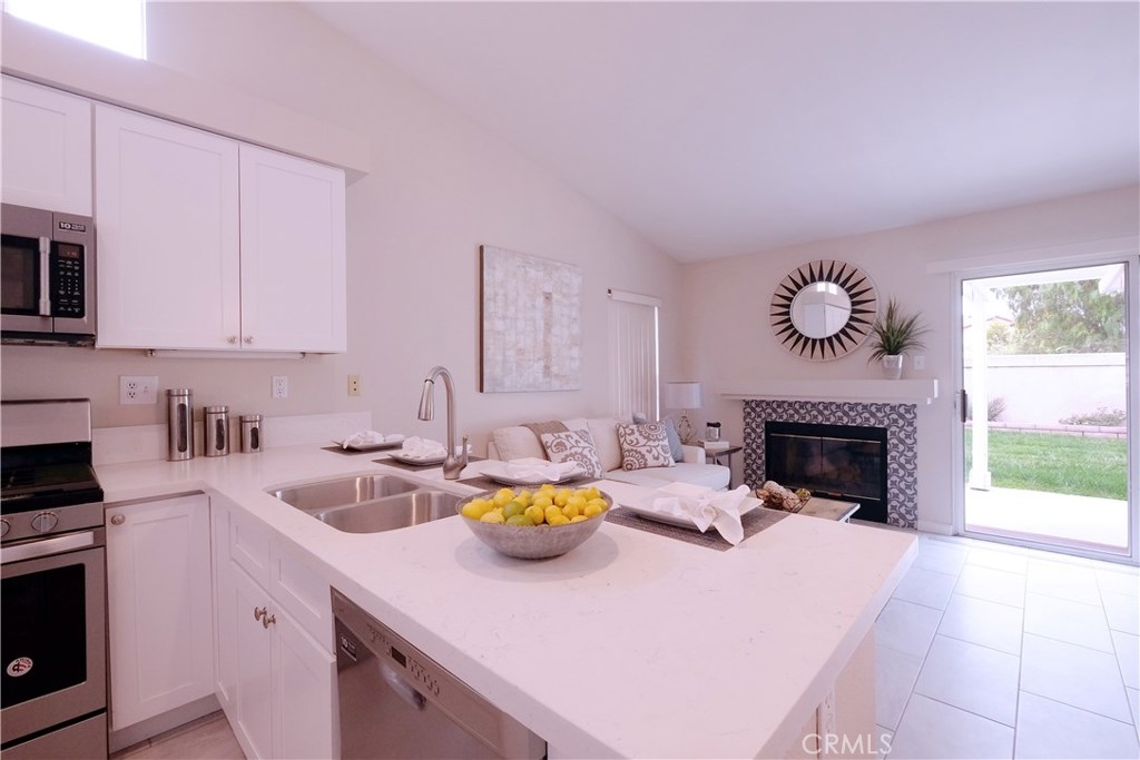 INTERIOR COMPLETELY REMODELED TO A LIGHT, BRIGHT AND MODERN PALETTE!! This turn-key single story home, located in the peaceful Veranda Community, features 3 bedrooms and 2 baths. Directly across from neighborhood park, the property is located near the end of a cul de sac and features no rear neighbors. Inside you can find an open and spacious floor plan. Well-designed interior features volume ceilings, new interior paint throughout in neutral colors, new tile in main areas and newly upgraded carpet in bedrooms, along with 2 1/4 baseboards and more. Any chef will love this large open kitchen, with new quartz counters, stainless steel faucet, sink and appliances. The adjoining family room features a new tile fireplace surround with a gas fireplace for those cozy winter evenings. Soft-close cabinetry in the kitchen and hall & refinished cabinets in the bathrooms complete the space. Outdoors, enjoy quiet moments from your covered patio. Low maintenance backyard and excellent access to area amenities, hospital and freeways. Low HOA and Low taxes - This one won’t last long!